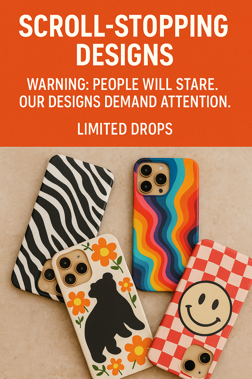 Why settle for boring? Your phone goes everywhere with you—make sure it shows off your style. Our cases are more than just protection—they're a reflection of you. Trendy, bold, sleek, or loud—find the one that matches your vibe and turn your phone into your favorite accessory. Limited drops. Unique designs. Grab yours before someone else grabs your style.